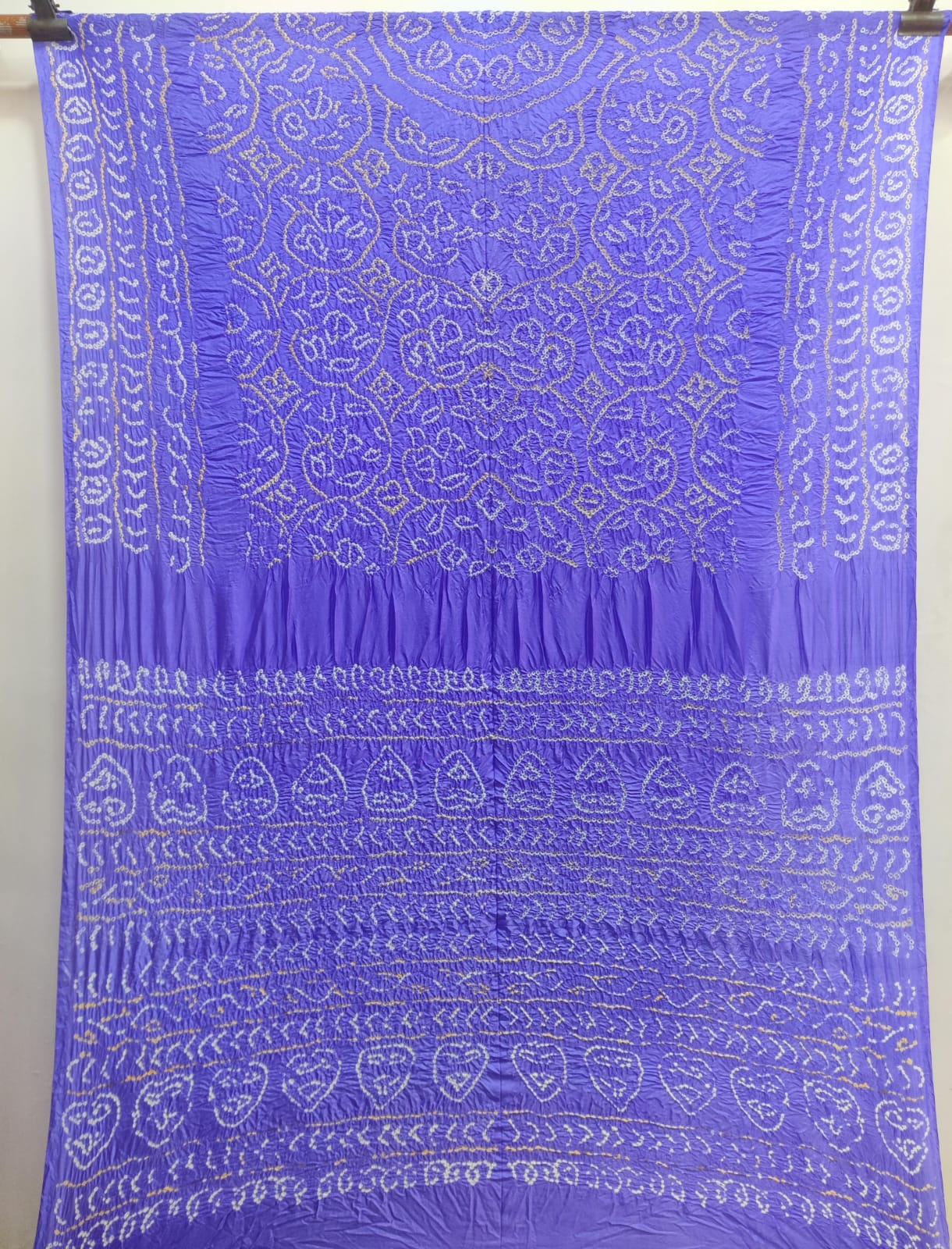 This is a hand-loom product so there might be some irregularities, but that is what makes a bandhnai saree unique. For any assistance on this product, you can email us at orders@buybandhani.com.
