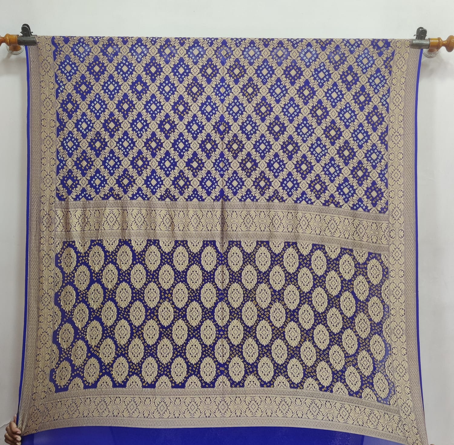 NIMZARI JANGLA ROYAL BLUE GEORGETTE BANDHANI SAREE