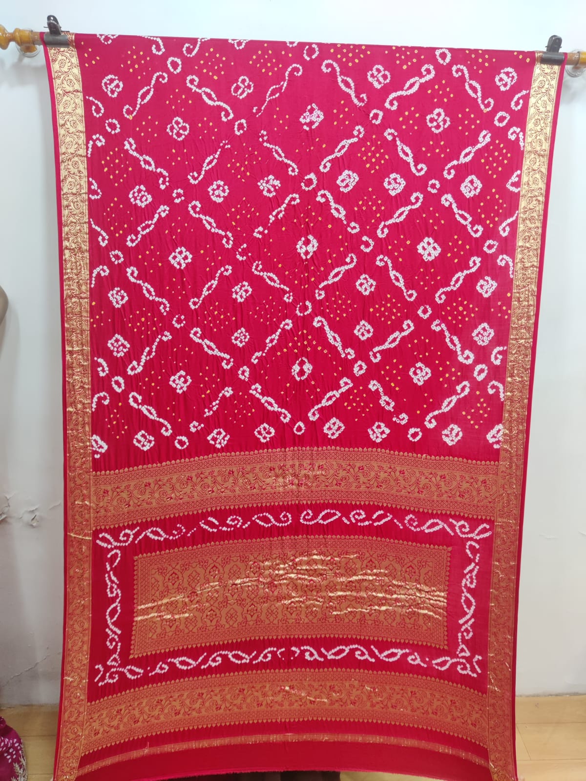 Technique –  BANDHANI SAREE WITH ZARI BORDER PALLU.