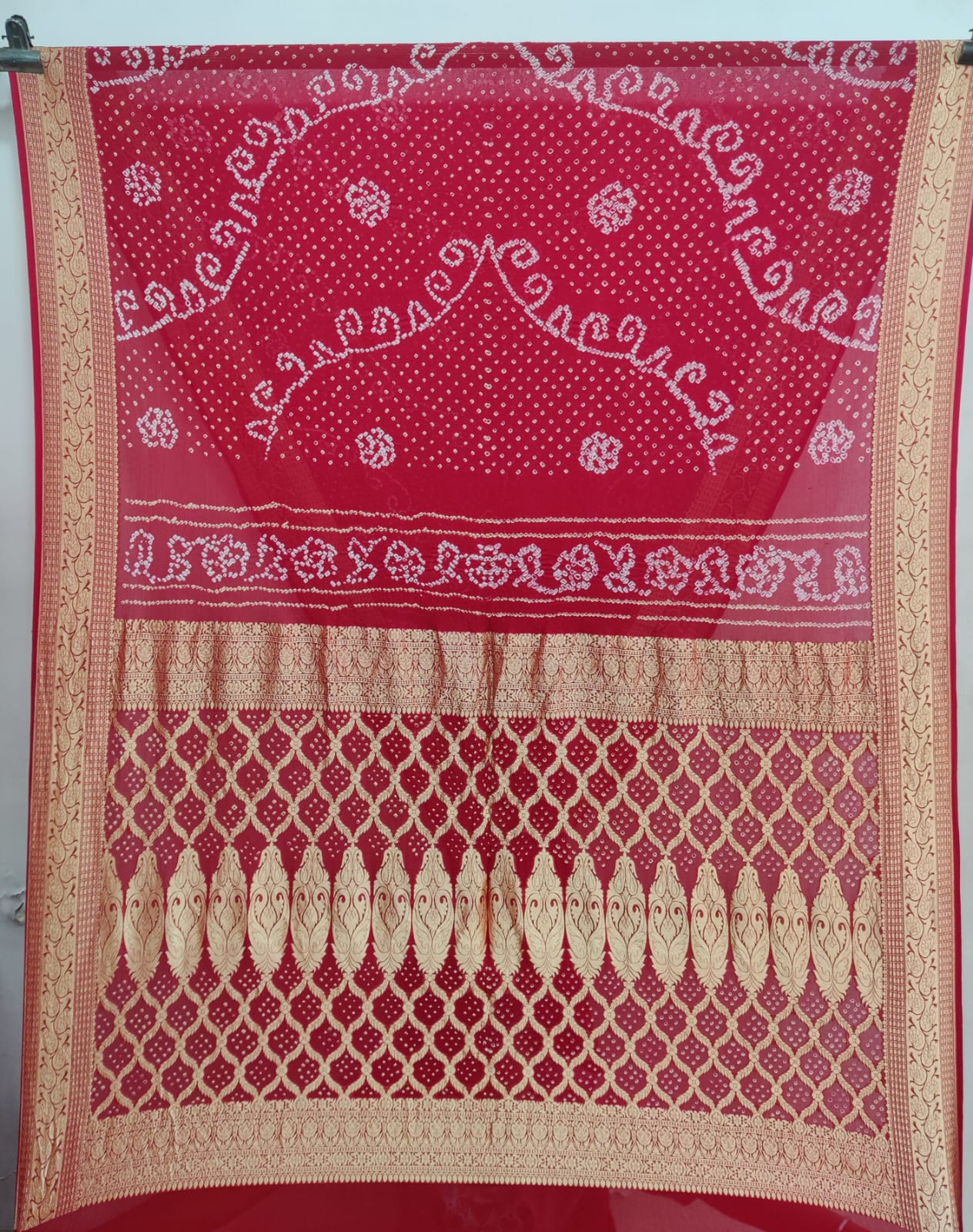 This is a hand-loom product so there might be some irregularities, but that is what makes a bandhnai saree unique. For any assistance on this product, you can email us at orders@buybandhani.com.
