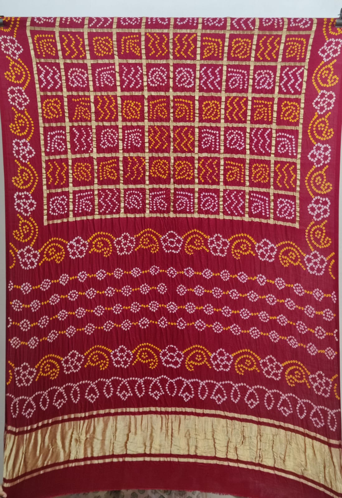 RED MAROON GHARCHOLA BANDHANI SAREE