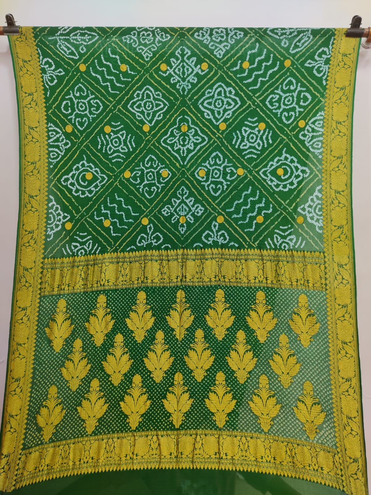 This is a hand-loom product so there might be some irregularities, but that is what makes a bandhnai saree unique. For any assistance on this product, you can email us at orders@buybandhani.com.