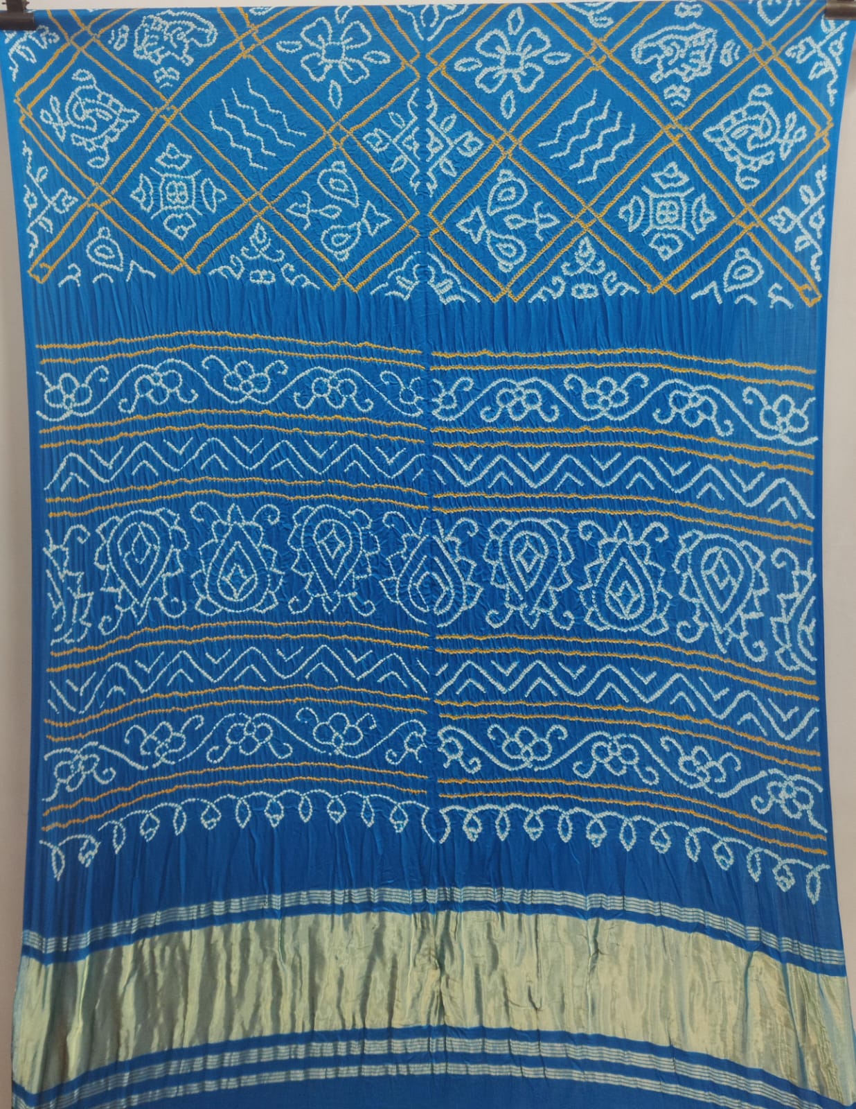 This is a hand-loom product so there might be some irregularities, but that is what makes a bandhnai saree unique. For any assistance on this product, you can email us at orders@buybandhani.com.